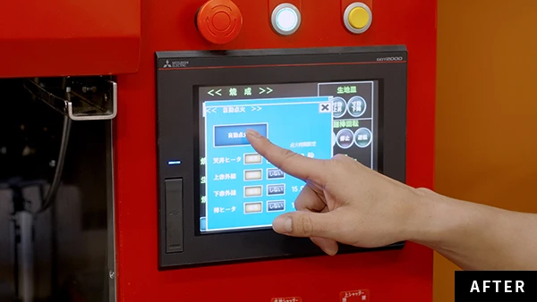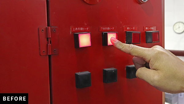天井ヒーター・上赤外線・下赤外線・棒ヒーターから、焼成する商品に合わせて使用するヒーターを選択し、「自動点火」ボタンを押すだけで順次点火。