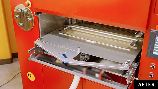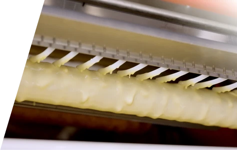 アクチュエーターに攪拌子付きの生地皿フタを組み合わせることで、フタが前後に動くたびに遮熱と生地の撹拌が可能。生地押棒なしで、生地の状態が均一に。