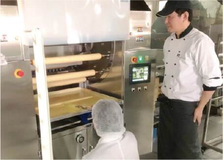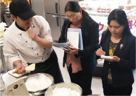 不二商会での研修と同じ内容を現地でも指導します。現地の状況に合わせて、焼きや配合の調整や作業の効率化をアドバイスします。
